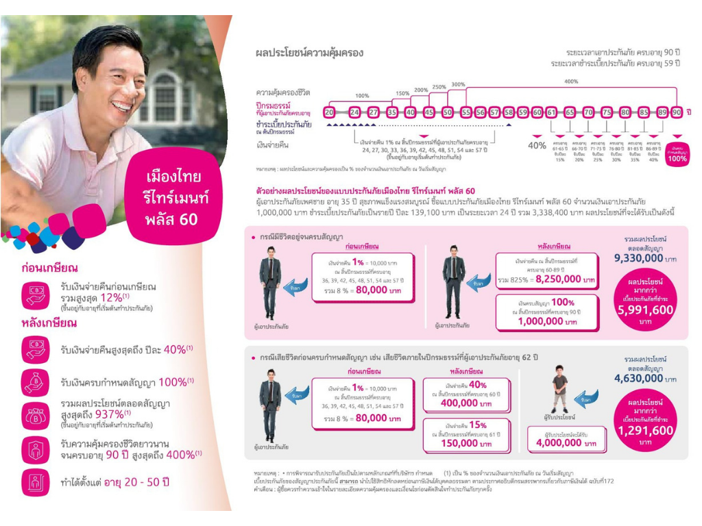 - รวมผลประโยชน์ตลอดสัญญาสูงสุดถึง 937%* (ขึ้นอยู่กับอายุที่เริ่มต้นทำประกันภัย)