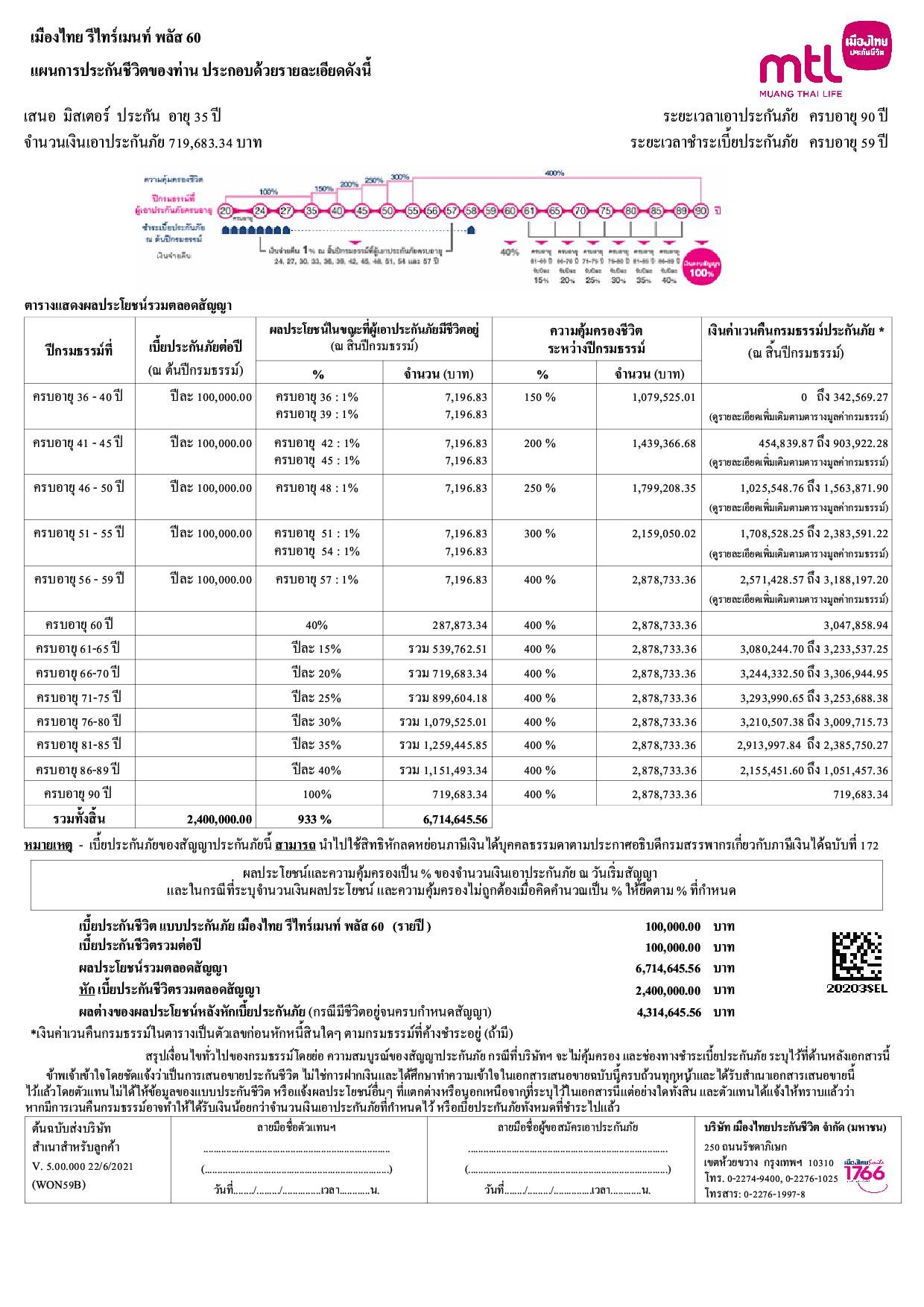ตัวอย่างใบเสนอขาย เบี้ยประกัน 100,000 บาท