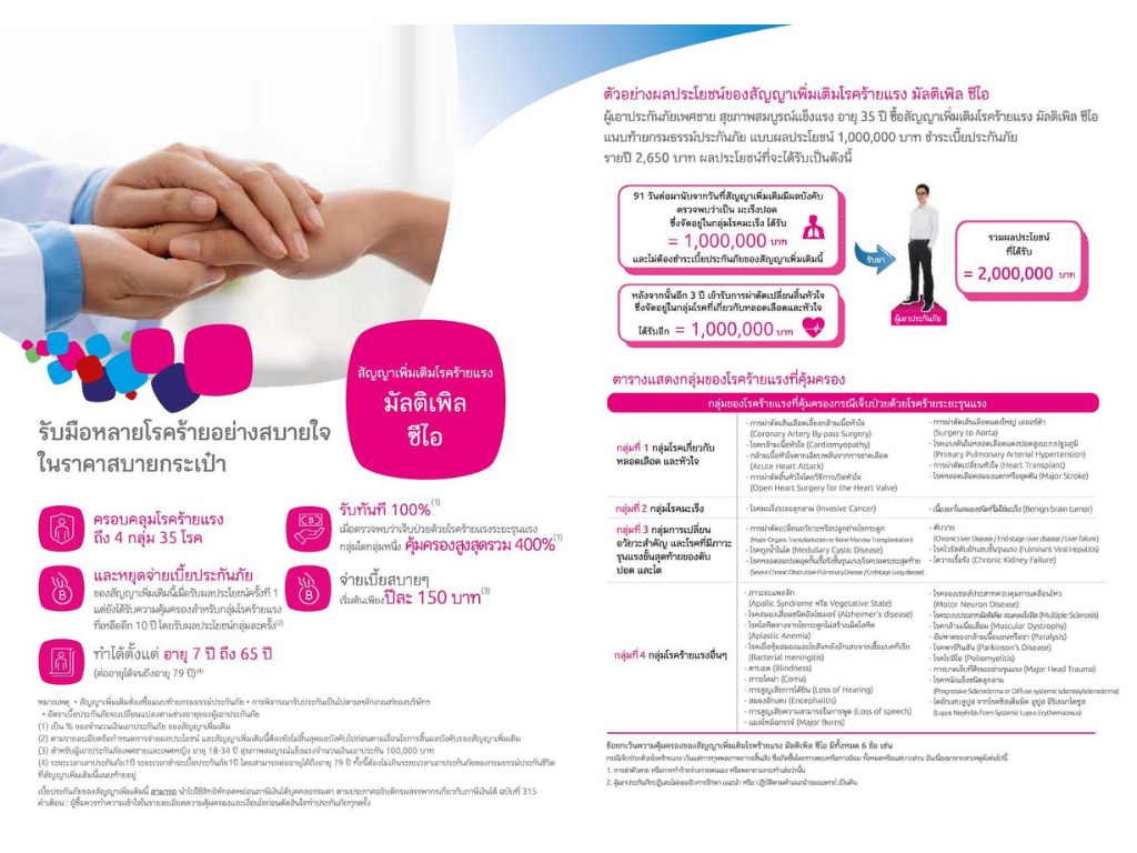 - ได้รับจำนวนเงินเอาประกันภัยเมื่อเป็นโรคร้ายแรง 35 โรคตามรายละเอียดกรมธรรม์