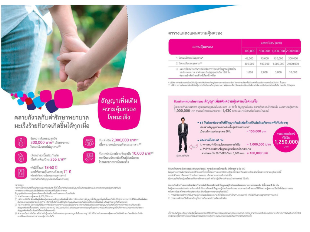 - รับเพิ่มอีก 2,000,000 บาท เมื่อตรวจพบโรคมะเร็งระยะลุกลาม