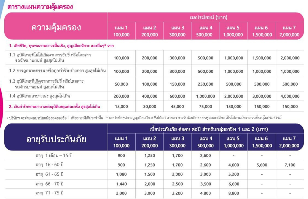 • คุ้มครองสูงสุดถึง 2,000,000 บาท หากเสียชีวิตจากอุบัติเหตุ