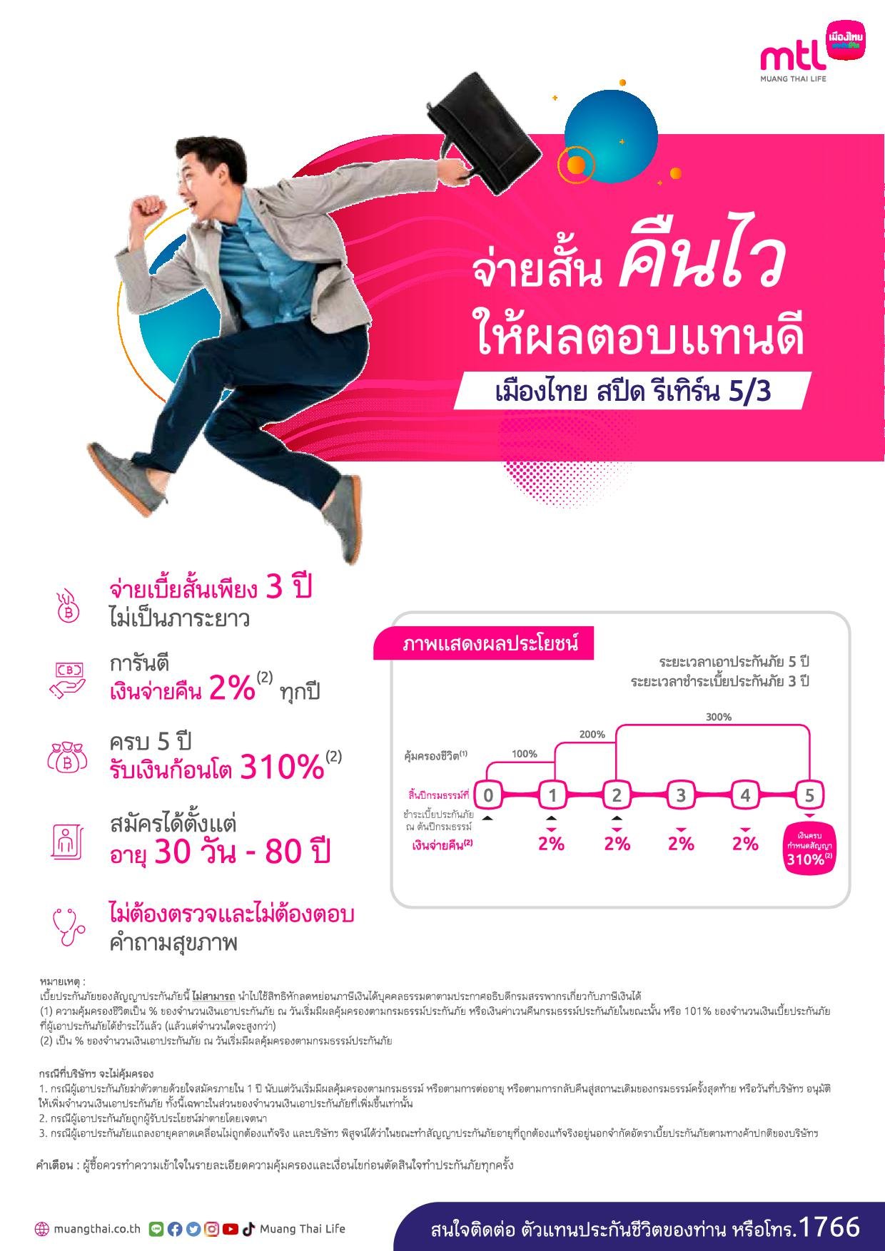 • การันตี เงินจ่ายคืน 2%* ทุกปี